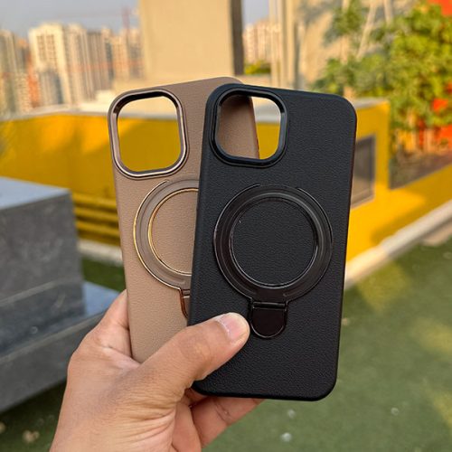 Using the Stand: Gently lift the bottom edge of the metallic MagSafe ring to deploy the hinge. Adjust to your preferred viewing angle on any flat surface.